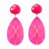 Pendiente de flamenca de lágrima plana de piedra cristal color burdeos con cabezal de flor