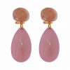 Pendientes de bolas de piedras Ágata multicolor en tonalidad malva con cabezal de nenúfar