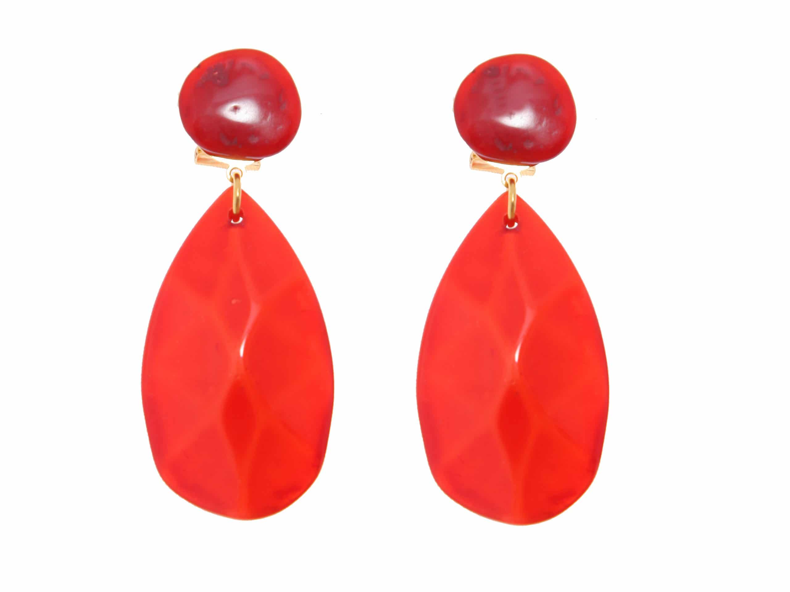 Pendiente de flamenca de cristal de color Rojo. Cierre omega. Medida 25x65mm (con cabezal). Fabricado artesanalmente en la provincia de Sevilla.