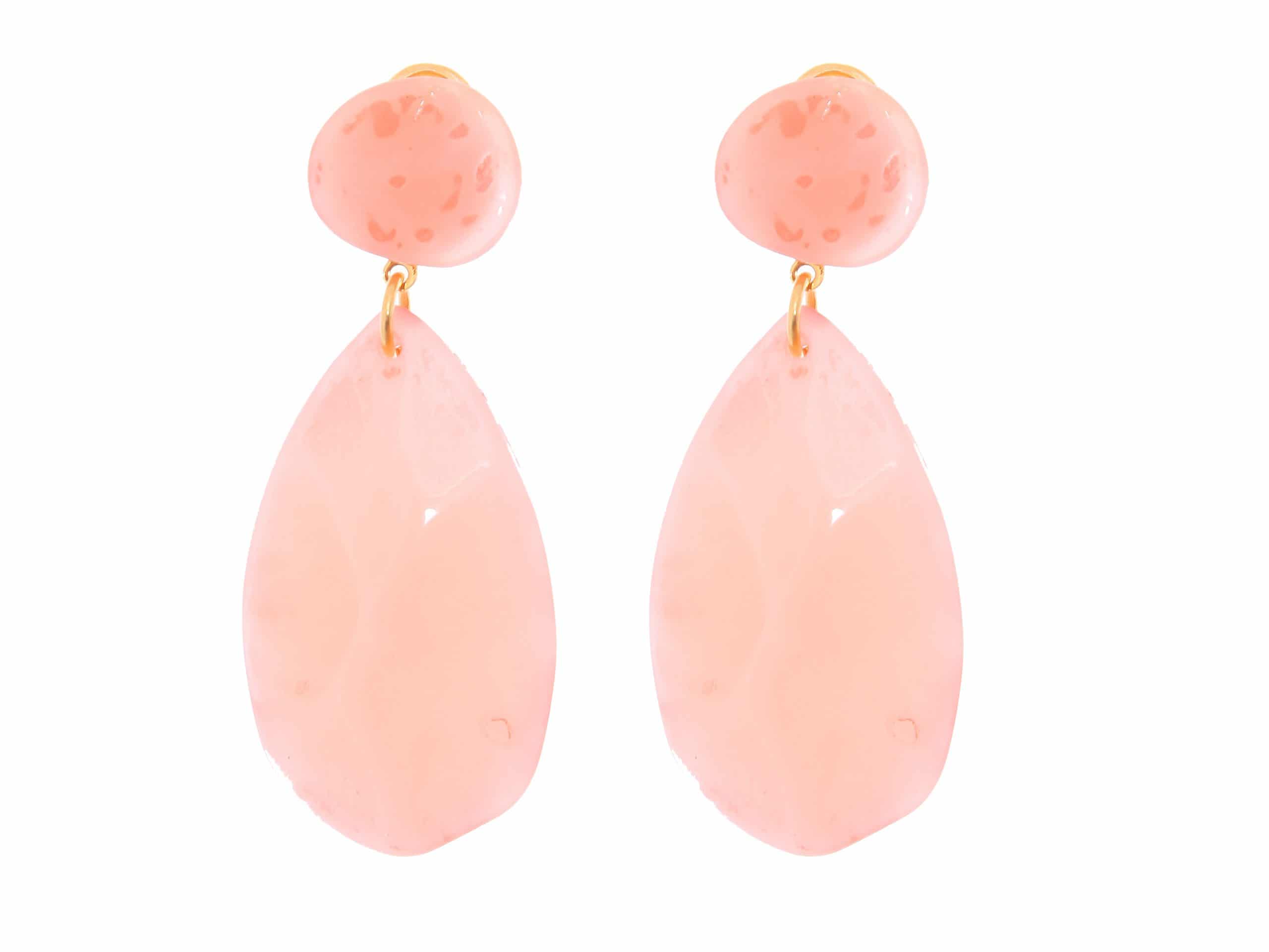 Pendiente de flamenca de cristal de color Rosa Palo. Cierre omega. Medida 25x65mm (con cabezal). Fabricado artesanalmente en la provincia de Sevilla.