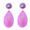 Pendientes de bolas de piedras Ágata multicolor en tonalidad malva con cabezal de flor