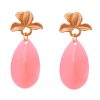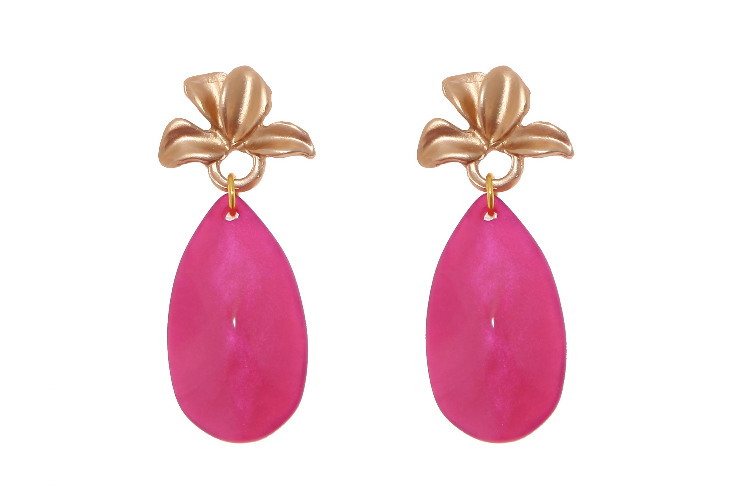 Pendiente de flamenca de lágrima de piedra cristal color buganvilla con cabezal de hojas