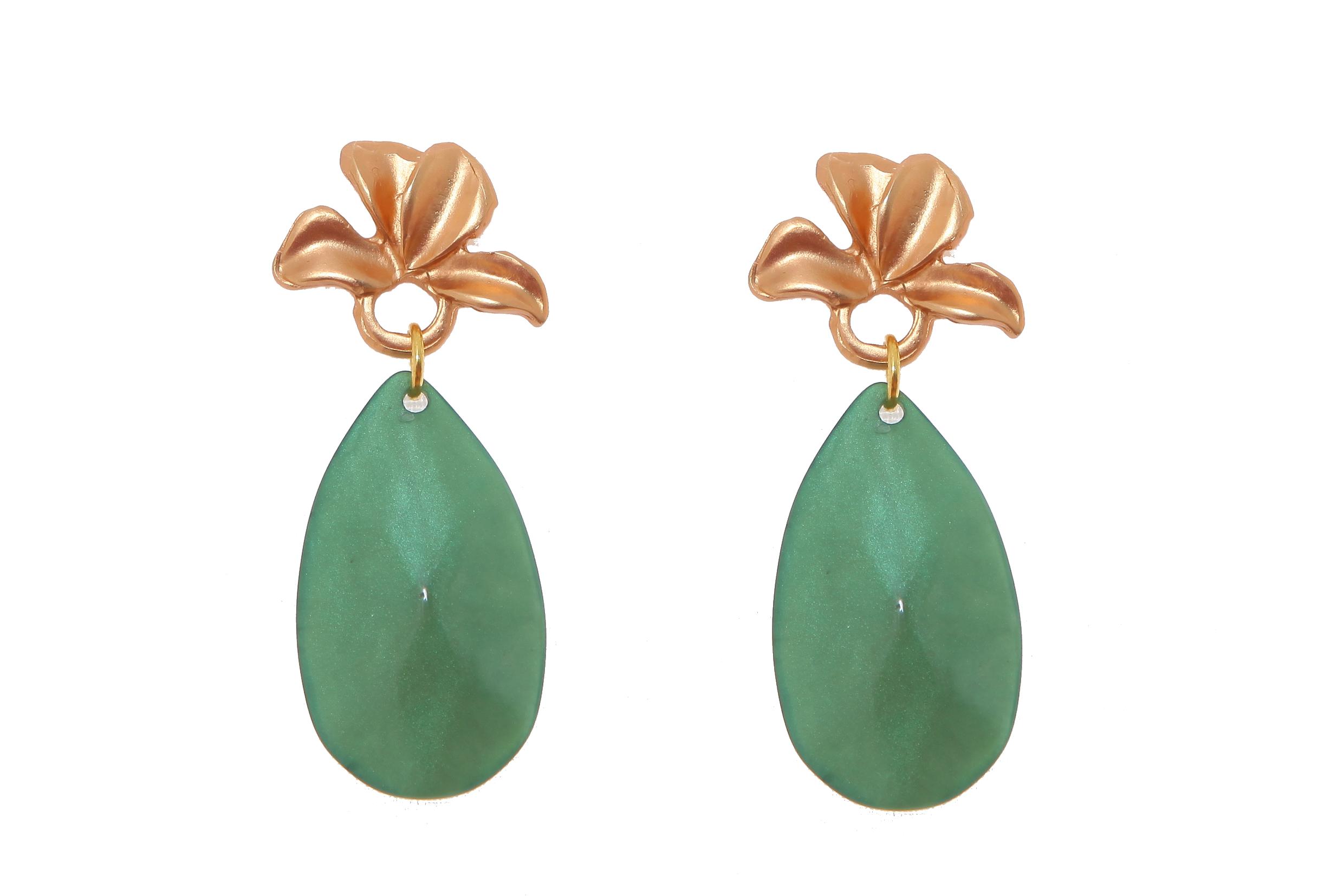 Pendiente de flamenca de lágrima de piedra cristal color verde esmeralda con cabezal de hojas