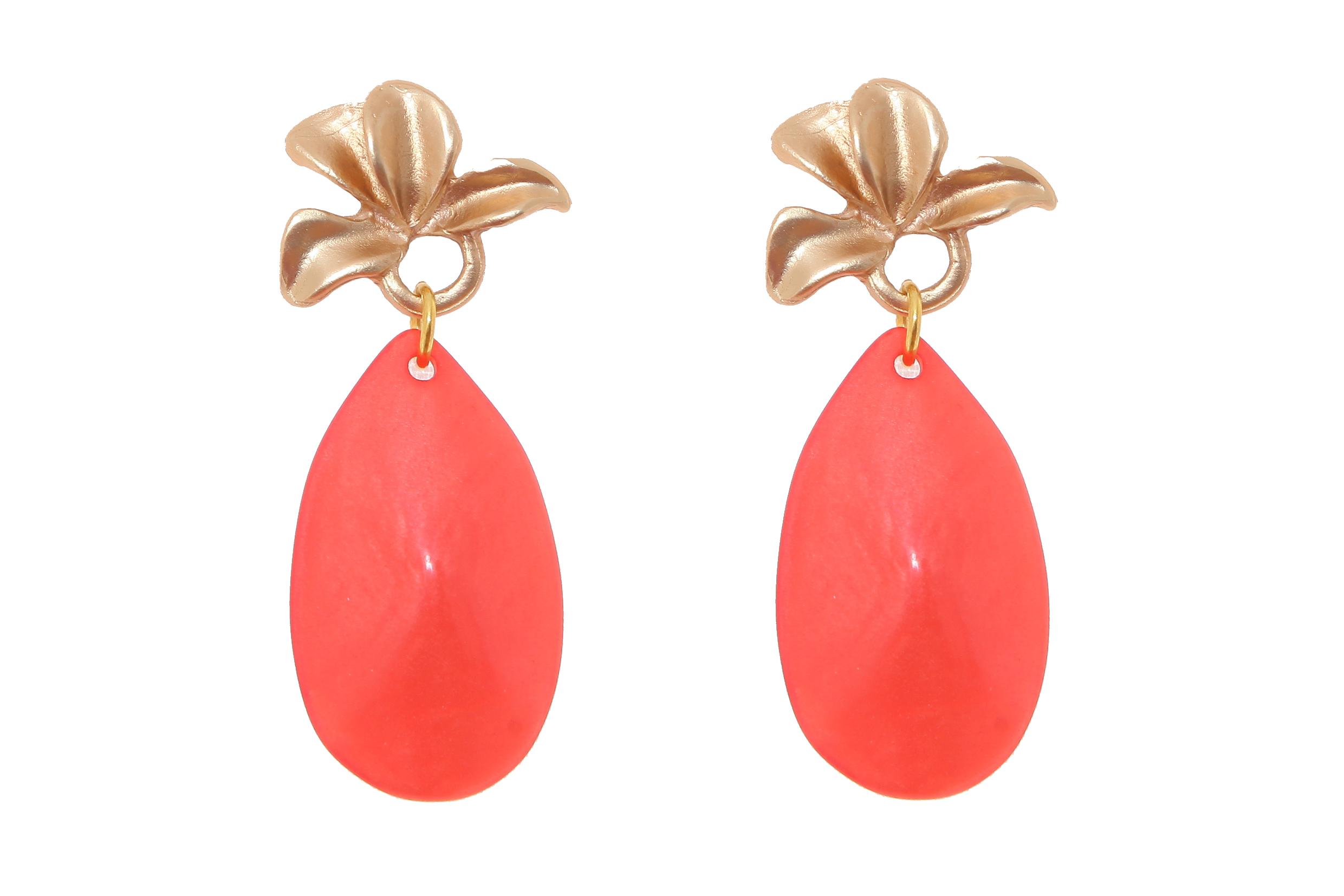 Pendiente de flamenca de lágrima de piedra cristal color coral con cabezal de hojas