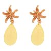Pendientes de bolas de piedras Ágata multicolor con cabezal de flor