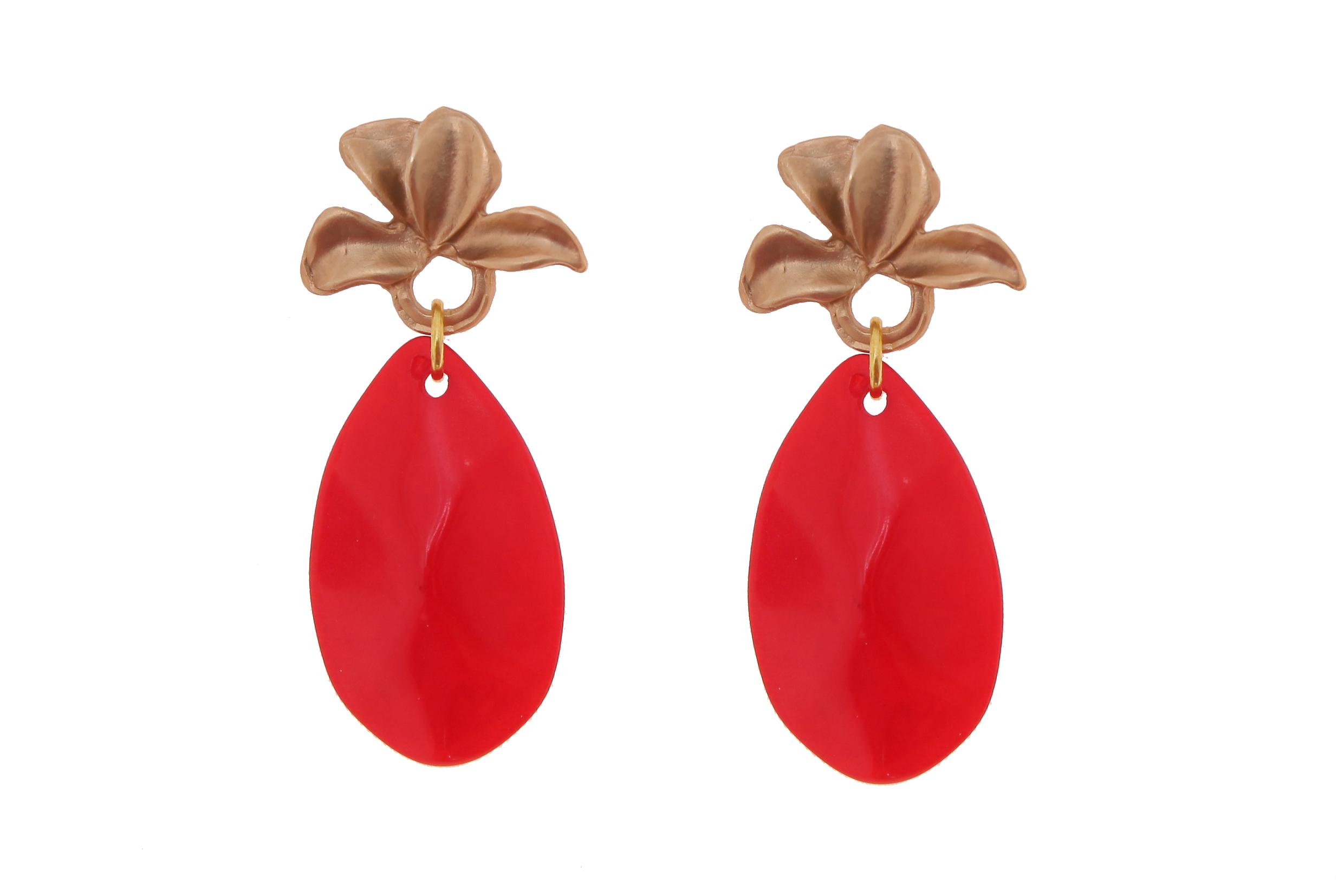 Pendiente de flamenca de lágrima de piedra cristal color rojo con cabezal de hojas