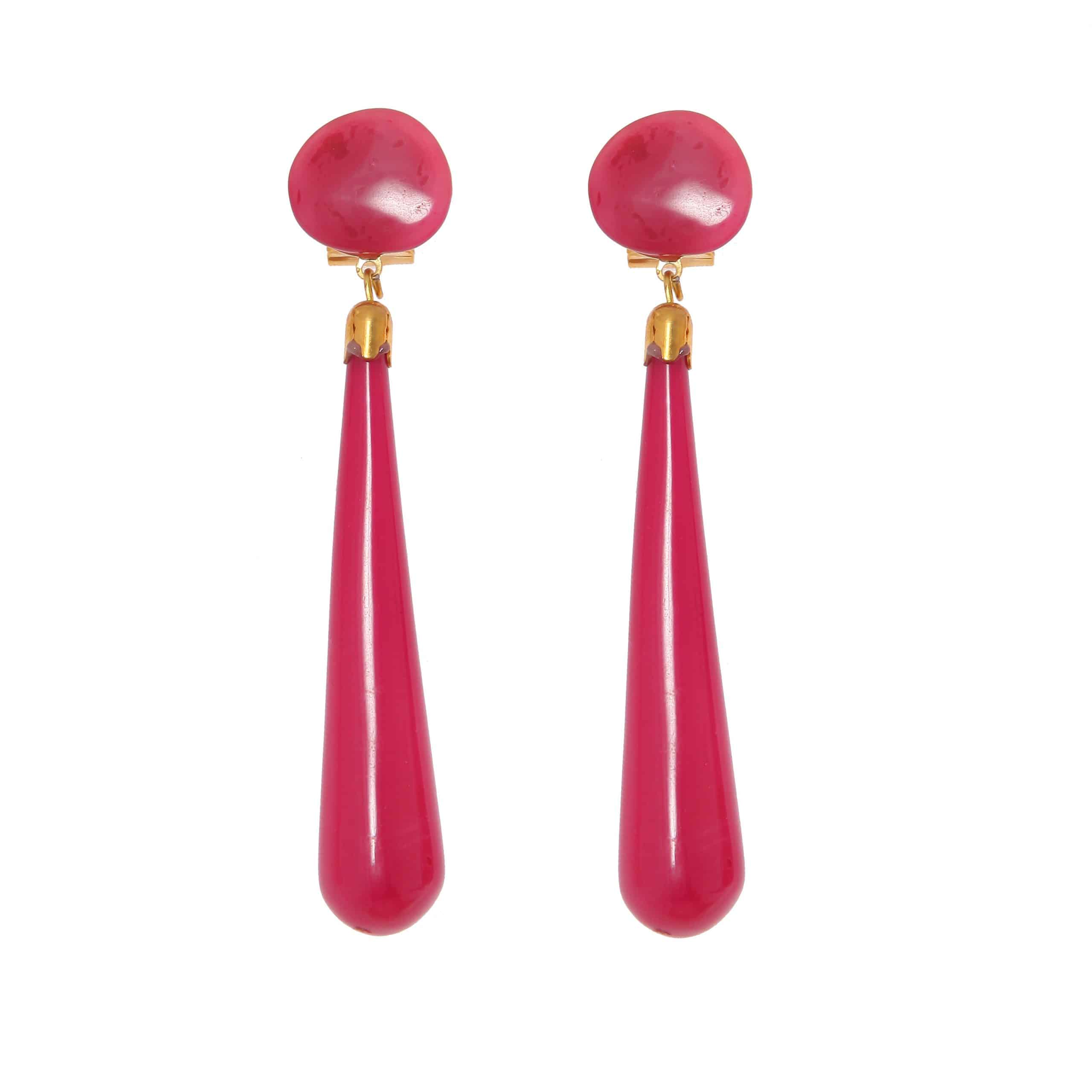 Pendiente de flamenca de lágrima de piedra cristal color Rosa Frambuesa