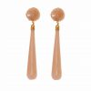 Pendientes de bolas de piedras Ágata y piedras nácar beige con cabezal de hojas