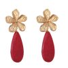 Pendiente de flamenca de lágrima plana de piedra cristal color burdeos con cabezal de flor