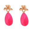 Pendiente de flamenca de lágrima de piedra cristal color rosa maquillaje con cabezal de hojas