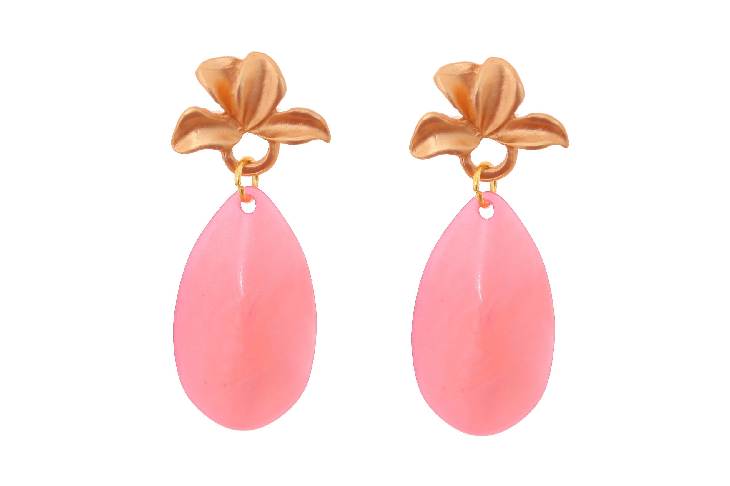 Pendiente de flamenca de lágrima de piedra cristal color rosa palo con cabezal de hojas