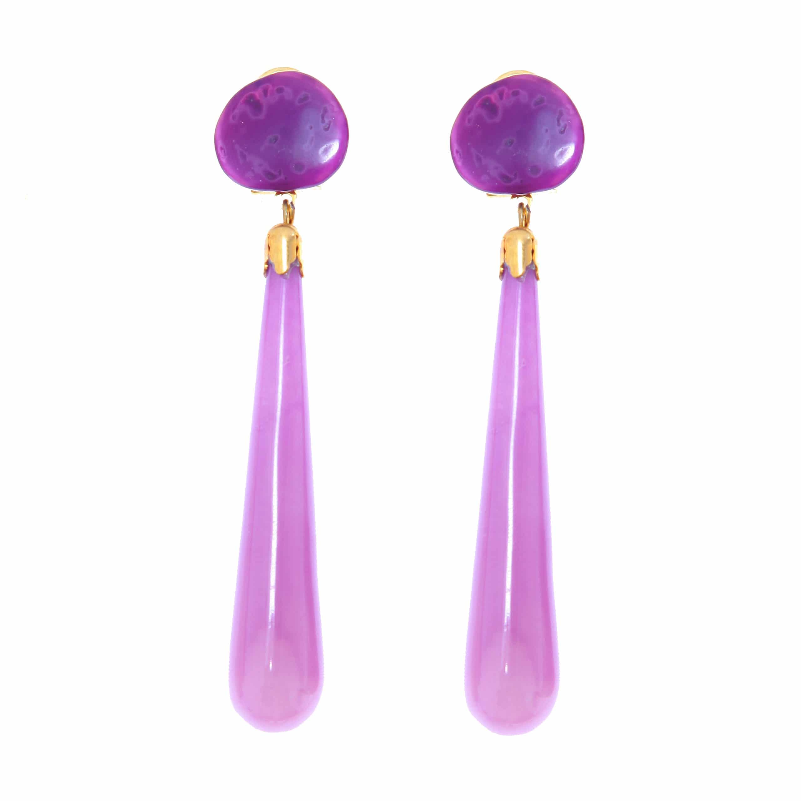 Pendiente de flamenca de lágrima de piedra cristal color Violeta