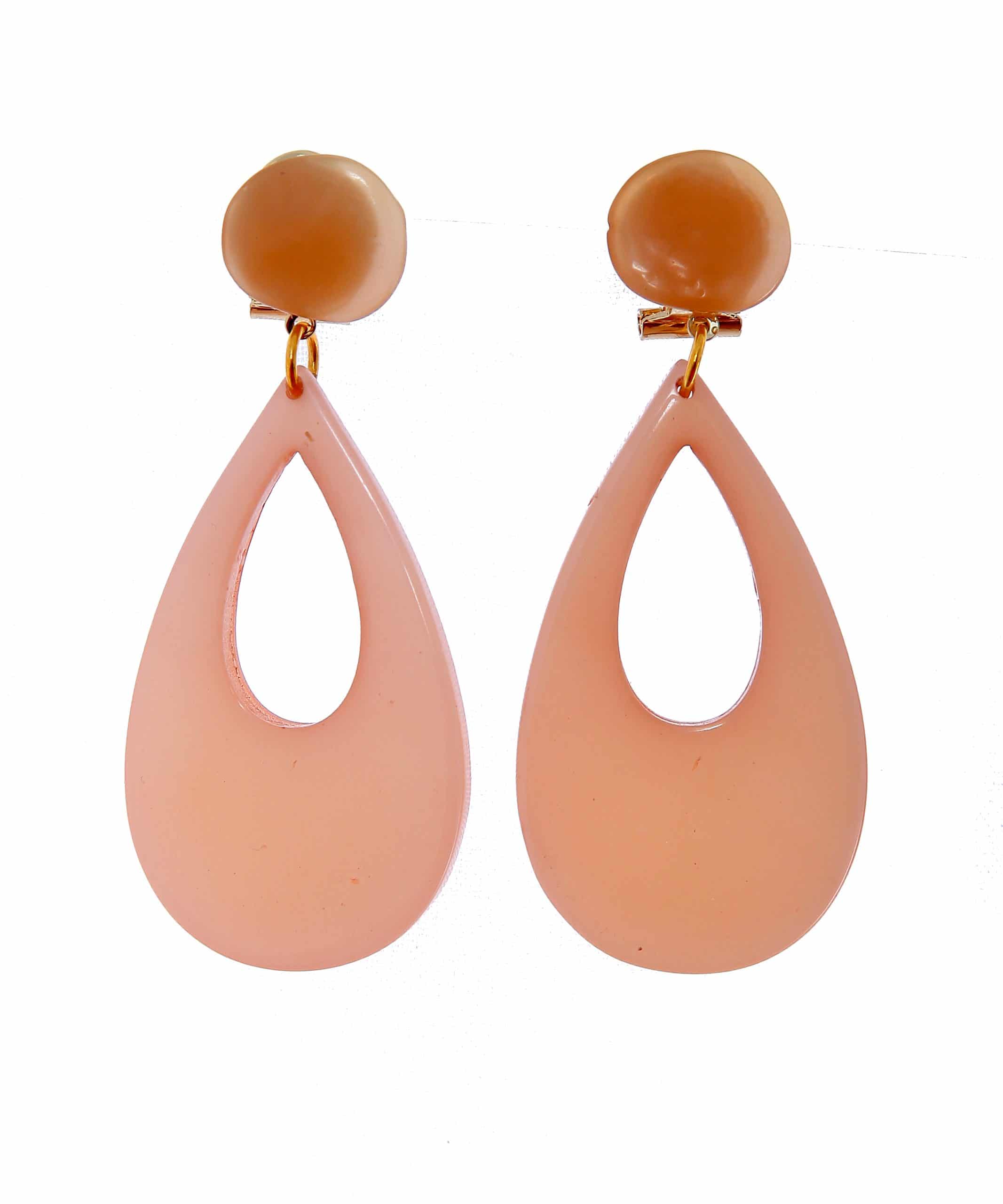 Pendiente de flamenca de resina cristal de color Beige. Cierre omega. Medida 30x55mm (sin cabezal). Fabricado artesanalmente en la provincia de Sevilla.