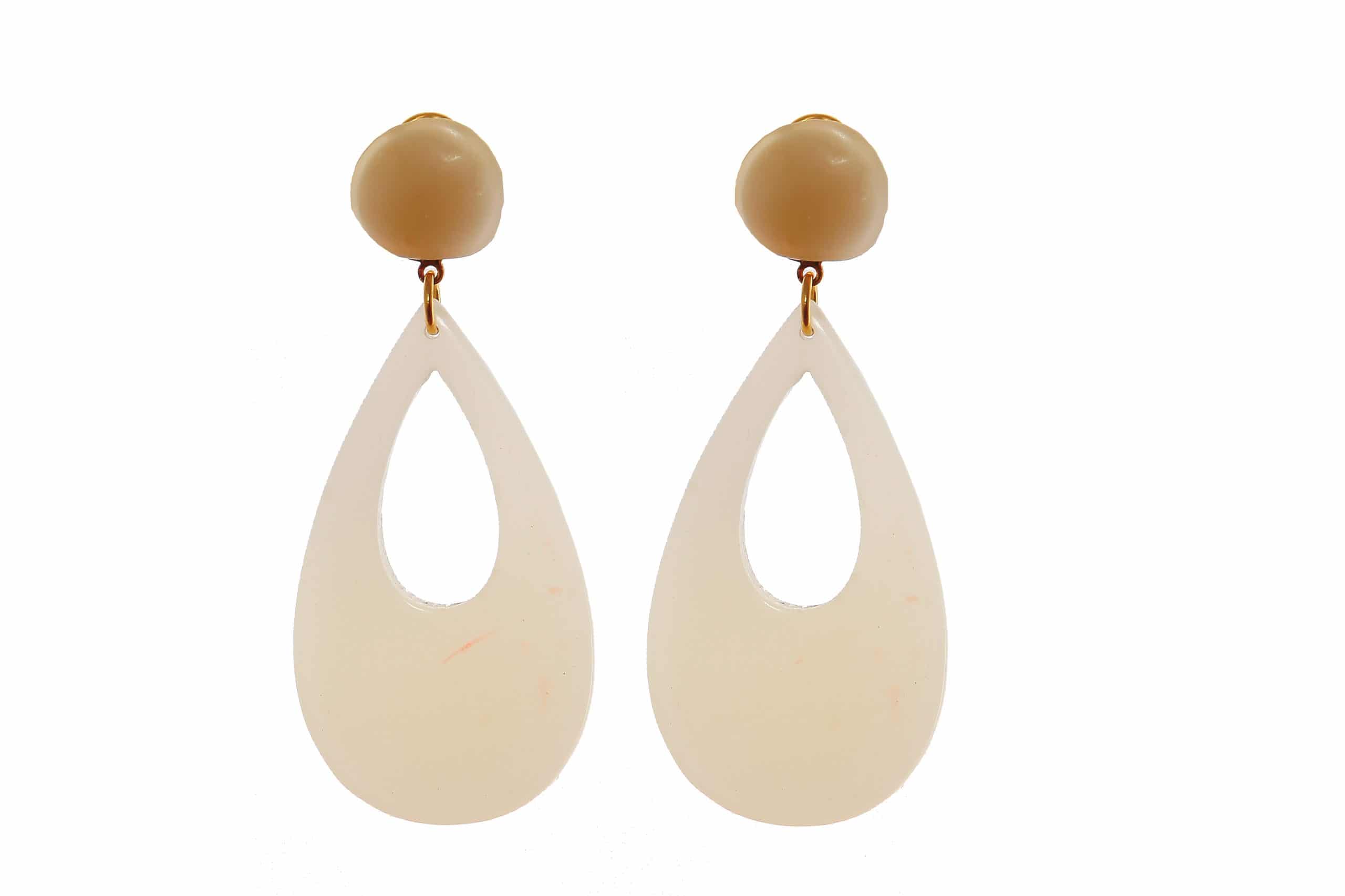 Pendiente de flamenca de resina cristal de color Marfil. Cierre omega. Medida 30x55mm (sin cabezal). Fabricado artesanalmente en la provincia de Sevilla.