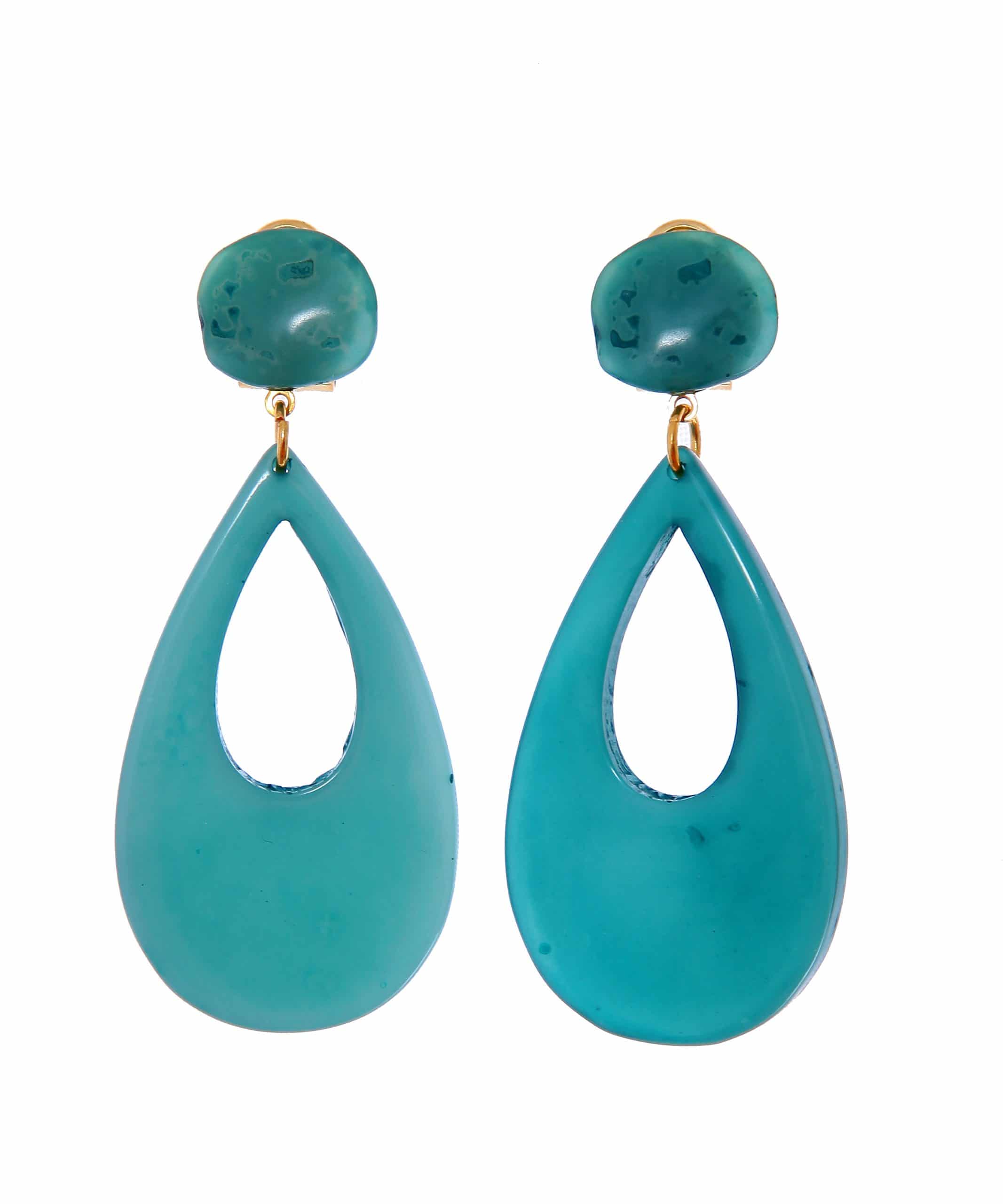 Pendiente de flamenca de lágrima de resina cristal color Verde Agua