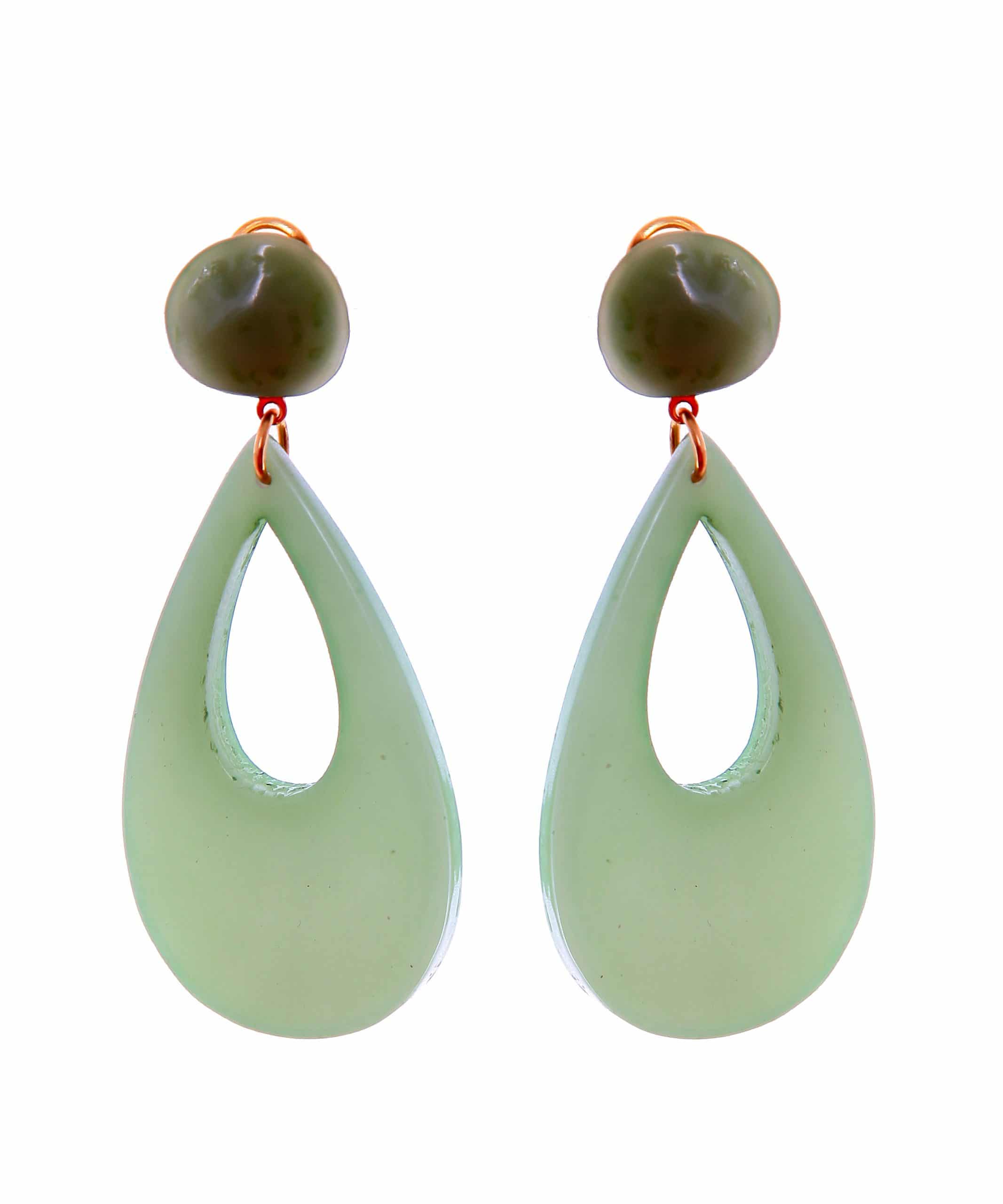 Pendiente de flamenca de lágrima de resina cristal color Verde Caki