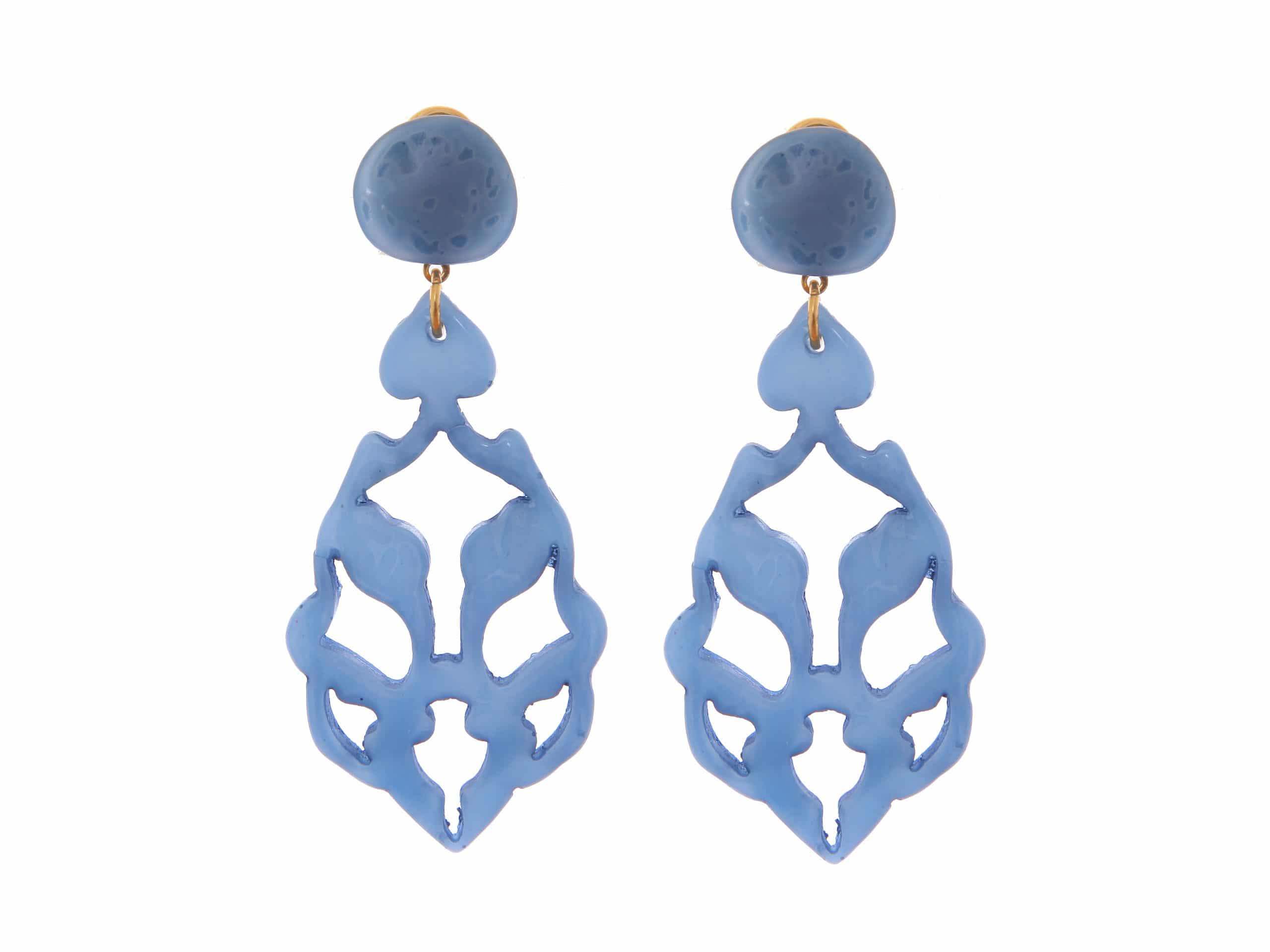 Pendiente de flamenca de resina cristal de color Azul Ducado. Cierre omega. Medida 30x60mm (sin cabezal). Fabricado artesanalmente en la provincia de Sevilla.