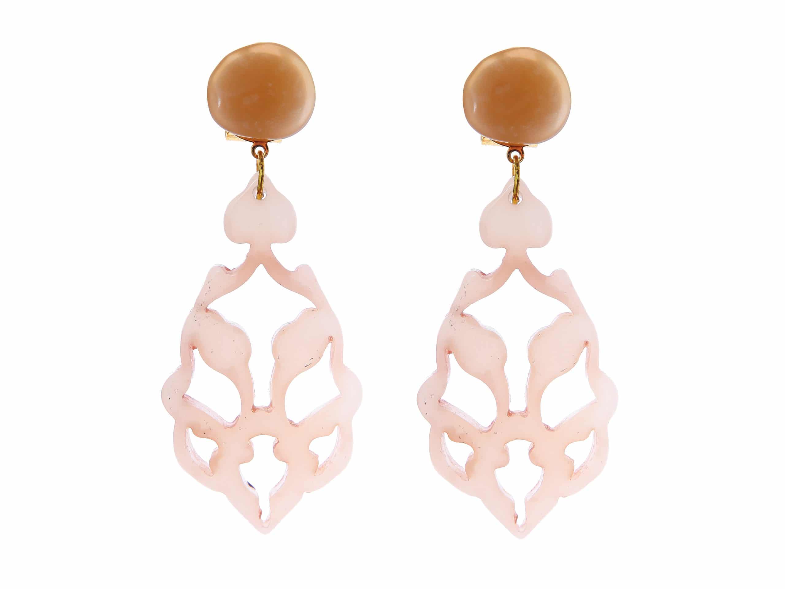 Pendiente de flamenca de resina cristal de color Beige. Cierre omega. Medida 30x60mm (sin cabezal). Fabricado artesanalmente en la provincia de Sevilla.