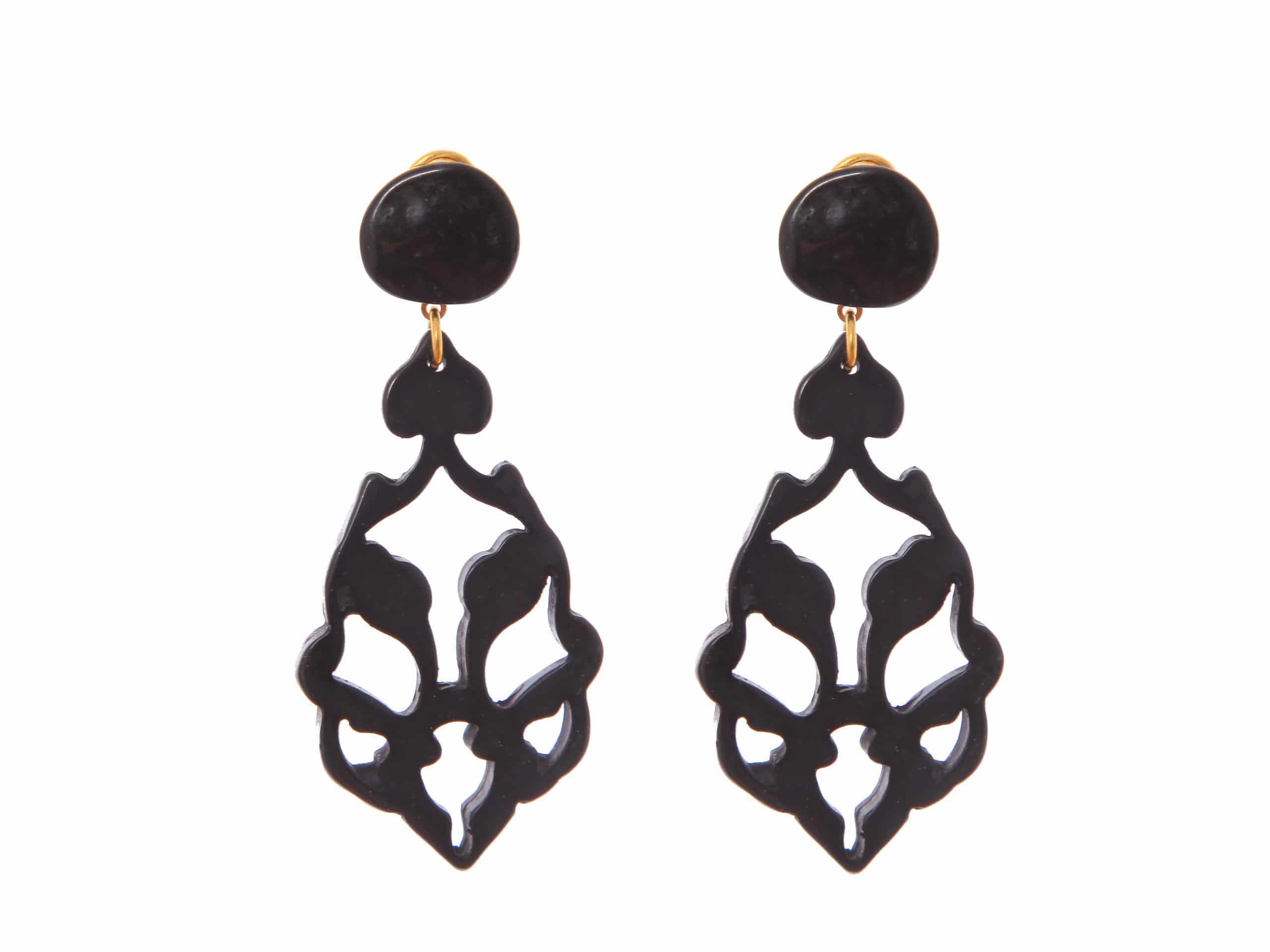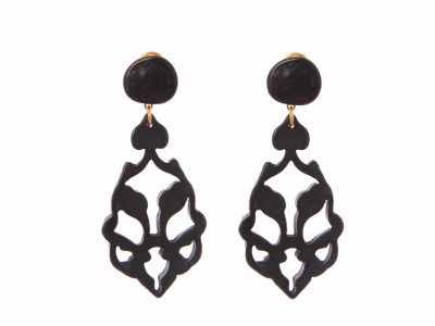 Pendiente de flamenca de resina cristal de color Negro. Cierre omega. Medida 30x60mm (sin cabezal). Fabricado artesanalmente en la provincia de Sevilla.