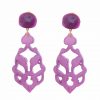 Pendiente de flamenca de lágrima plana de piedra cristal color burdeos con cabezal de flor
