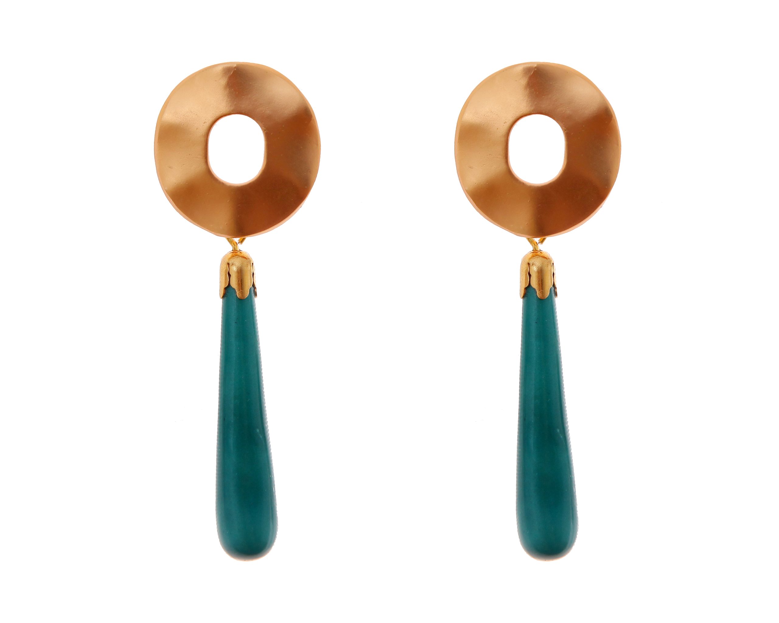 Pendiente de flamenca de lágrima pequeña de piedra cristal color verde cabezal círculo metal