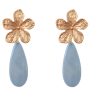 Pendientes de bolas de piedras Ágata multicolor en tonalidad malva con cabezal de flor