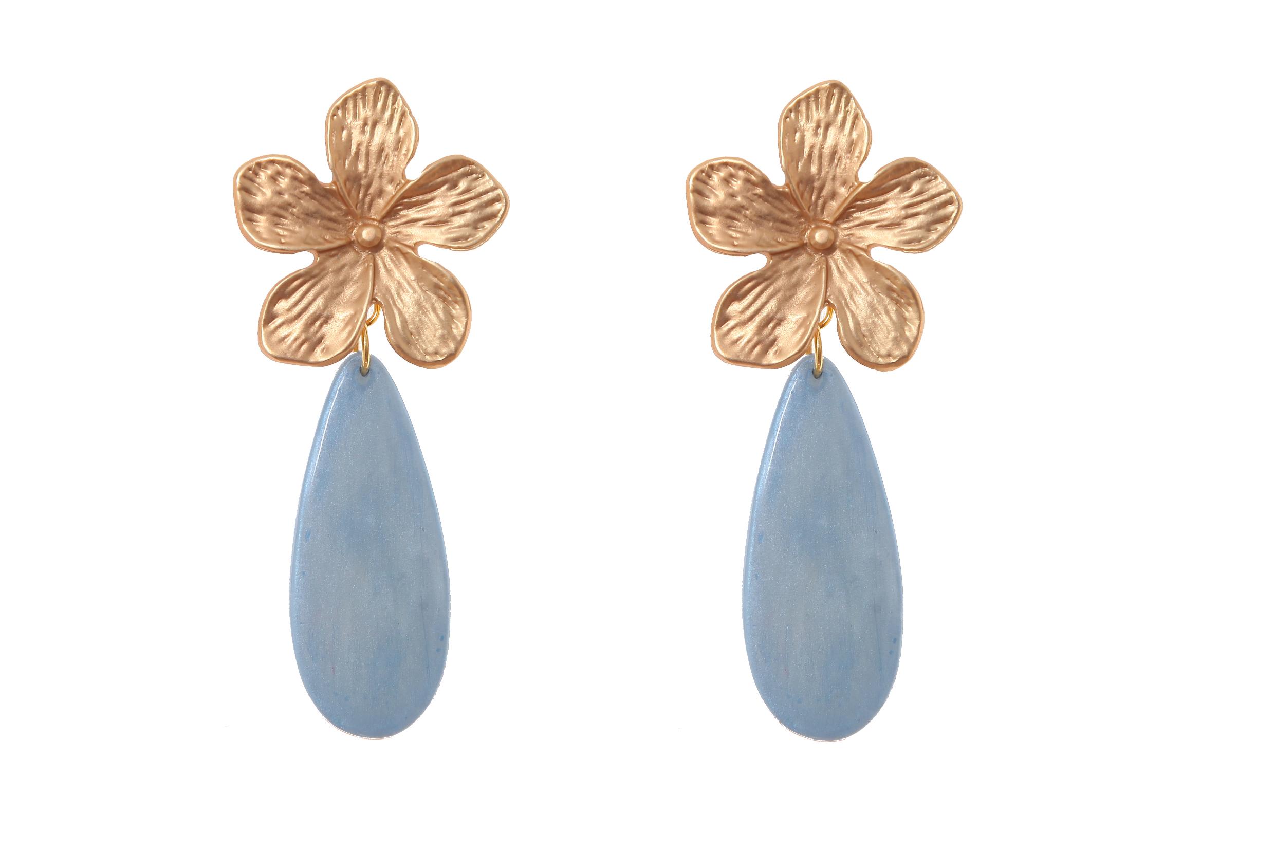 Pendiente de flamenca de lágrima plana de piedra cristal color azul ducado con cabezal de flor