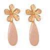 Pendientes de bolas de piedras Ágata multicolor en tonalidad malva con cabezal de nenúfar