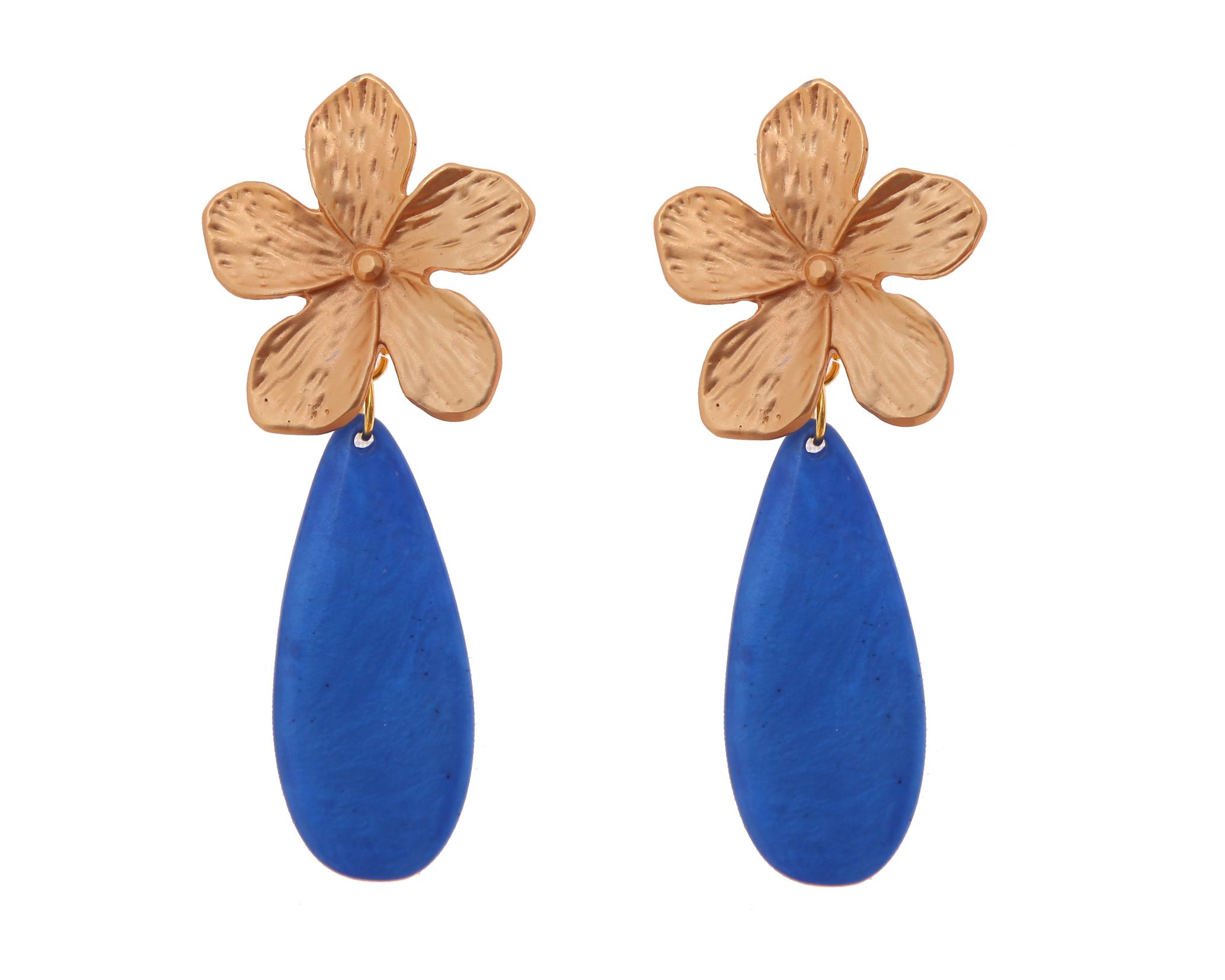 Pendiente de flamenca de lágrima plana de piedra cristal color azul zafiro con cabezal de flor