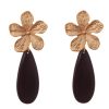 Pendientes de bolas de piedras Ágata multicolor con cabezal de flor a rayas