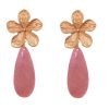 Pendientes de bolas de piedras Ágata multicolor en tonalidad malva con cabezal de flor