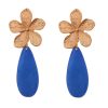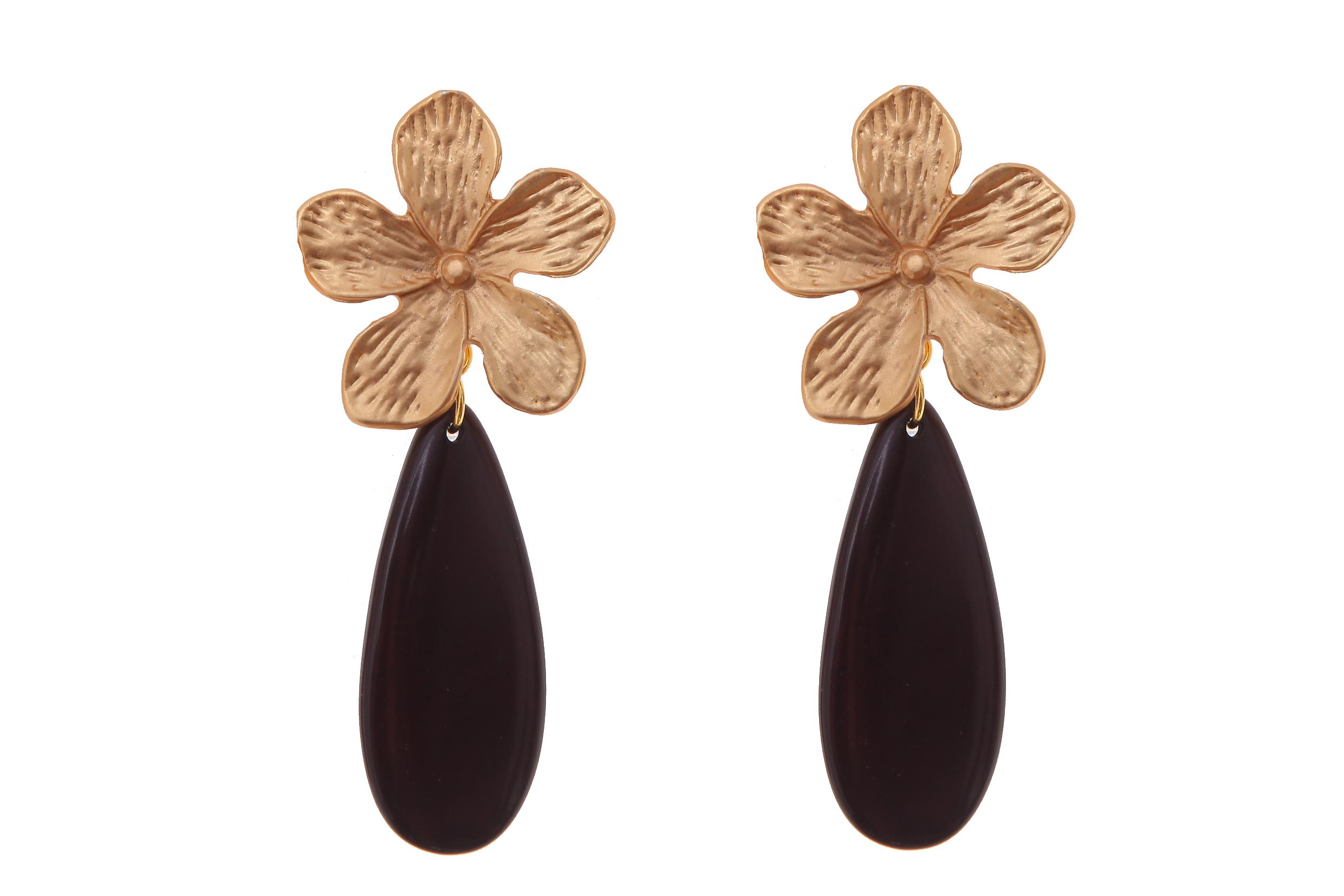 Pendiente de flamenca de lágrima plana de piedra cristal color negro con cabezal de flor