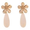 Pendientes de bolas de piedras Ágata y piedras nácar beige con cabezal de hojas