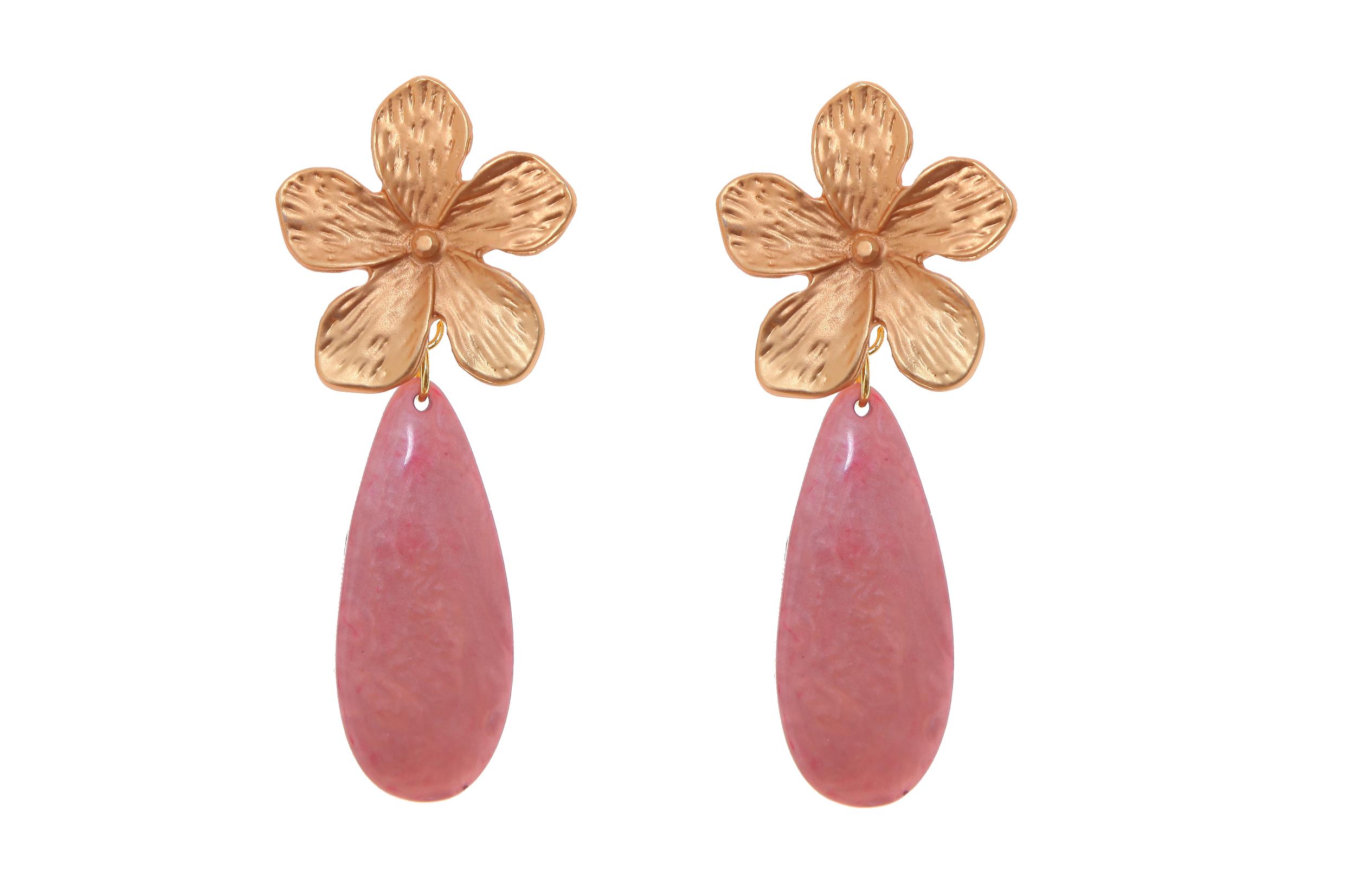 Pendiente de flamenca de lágrima plana de piedra cristal color rosa maquillaje con cabezal de flor