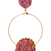 Pendiente de flamenca resina en forma de aro con filigrana rosa chicle