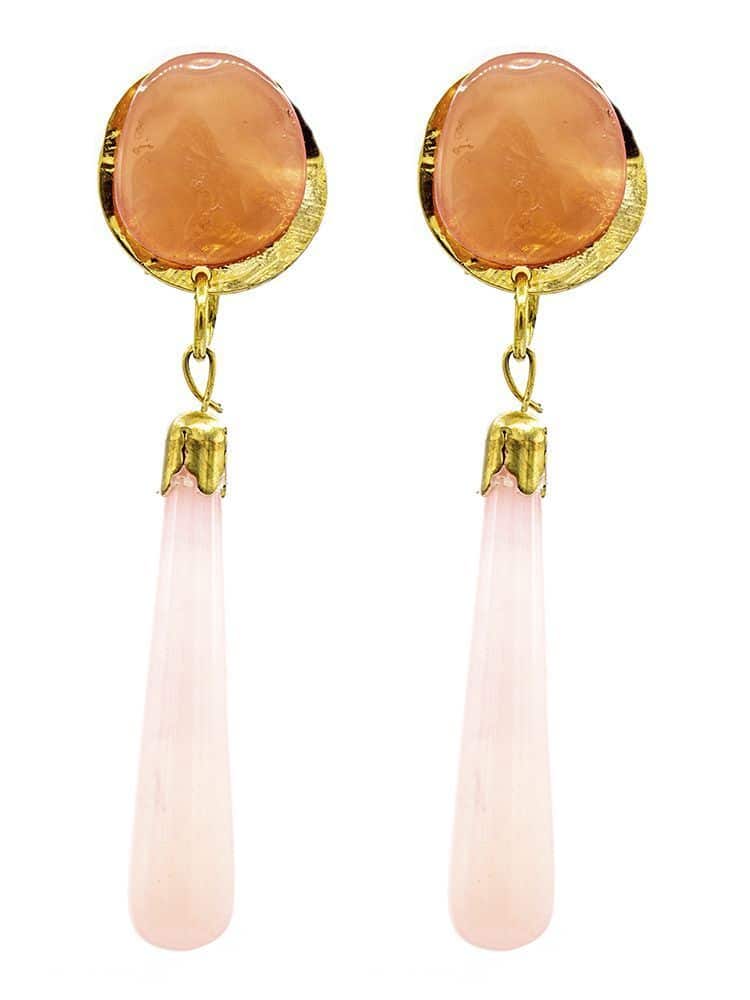 Pendiente de flamenca de resina cristal, en forma de lágrima, color rosa palo, con fornitura metálica, cierre omega, y medidas (sin cabezal) de: 6 x 40 mm. Fabricado artesanalmente en Sevilla.