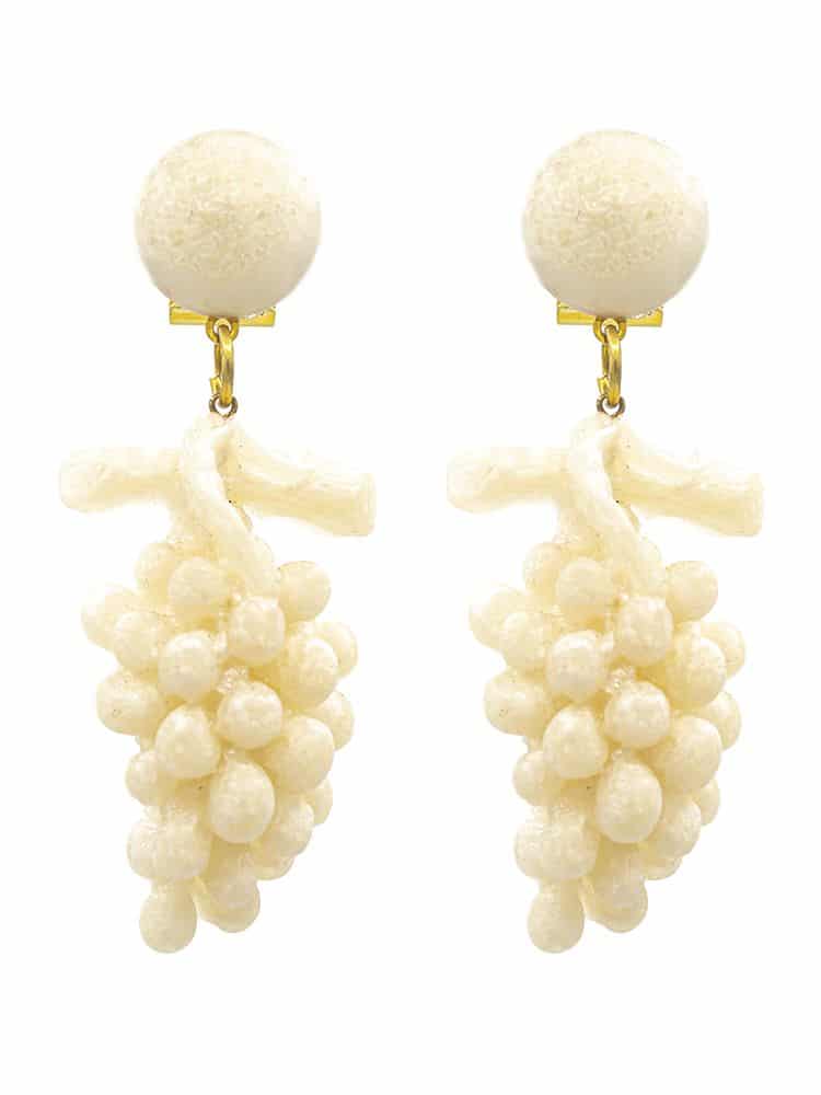 Pendiente de flamenca en forma racimo, de resina, en color marfil dorado y unas medias de 45 x 30 mm (sin cabezal). Fabricado artesanalmente en Sevilla.
