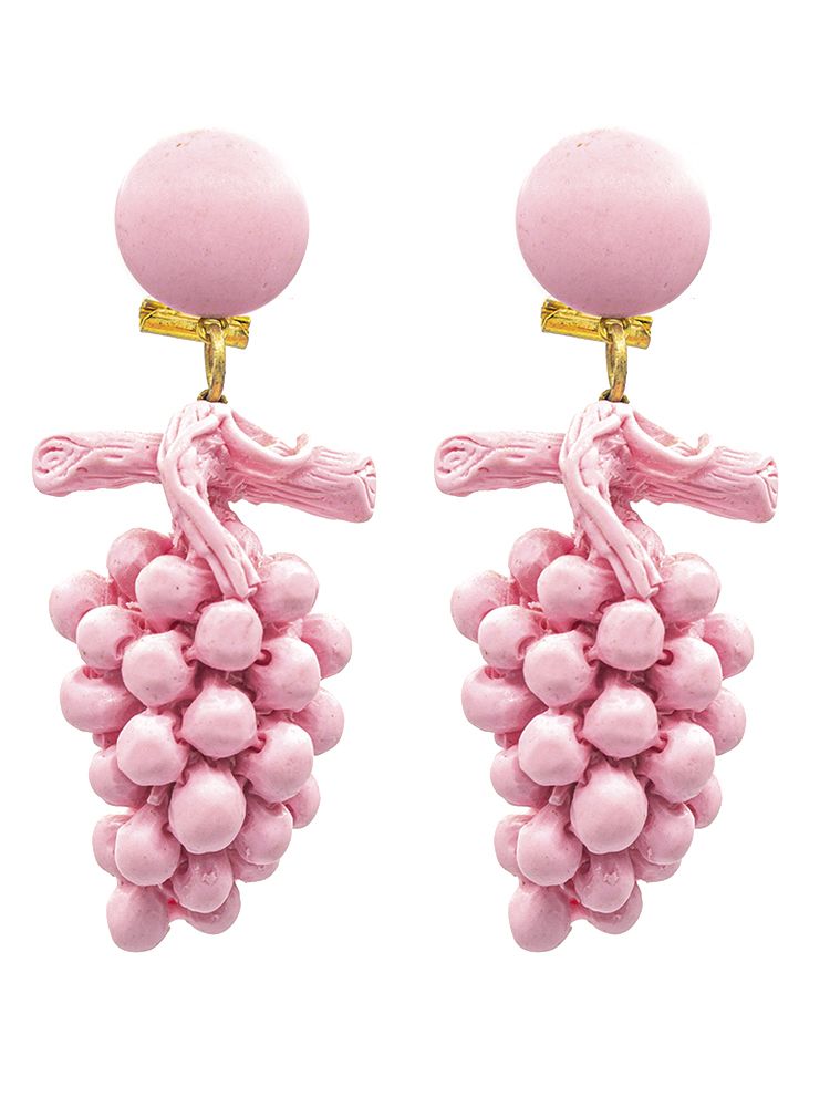 Pendiente de flamenca en forma racimo, de resina, en color rosa y unas medias de 45 x 30 mm (sin cabezal). Fabricado artesanalmente en Sevilla.