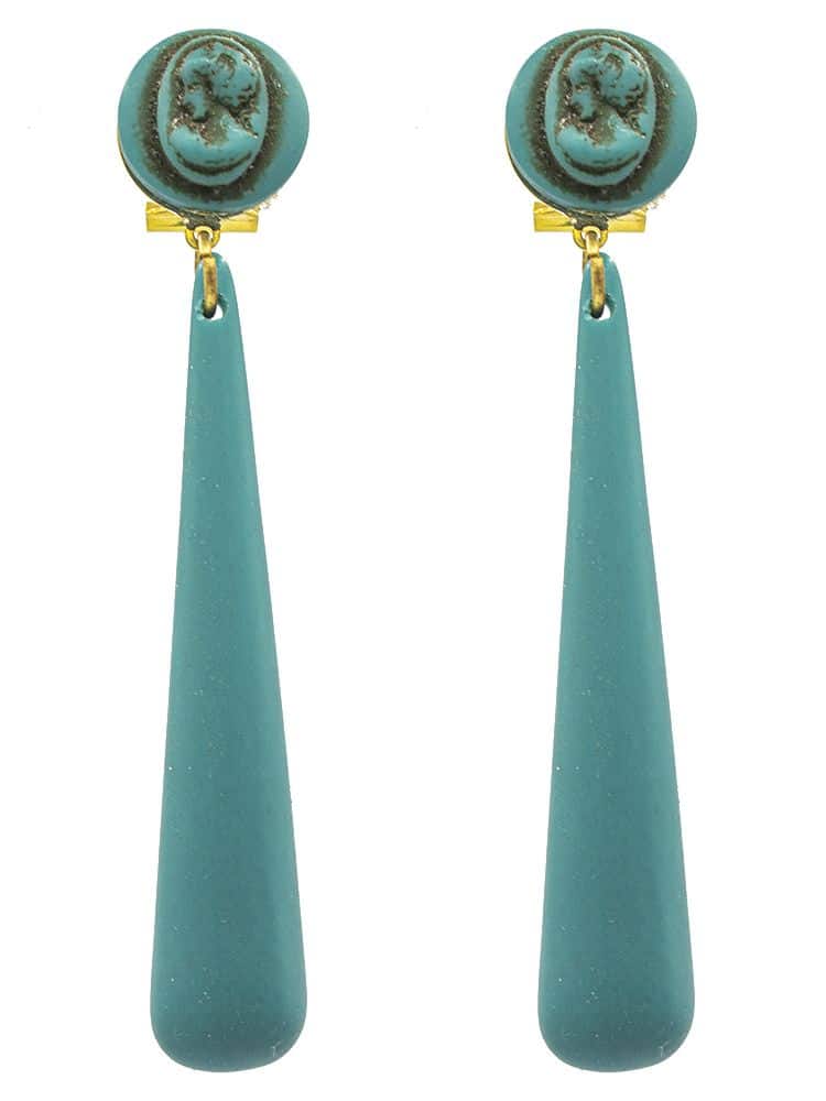 Pendiente de flamenca en resina de lágrima color verde agua oscuro