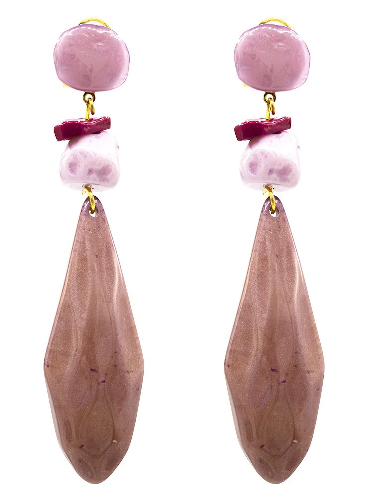 Pendiente de flamenca grande esmaltado acuarela color malva, maquillaje oscuro y buganvilla