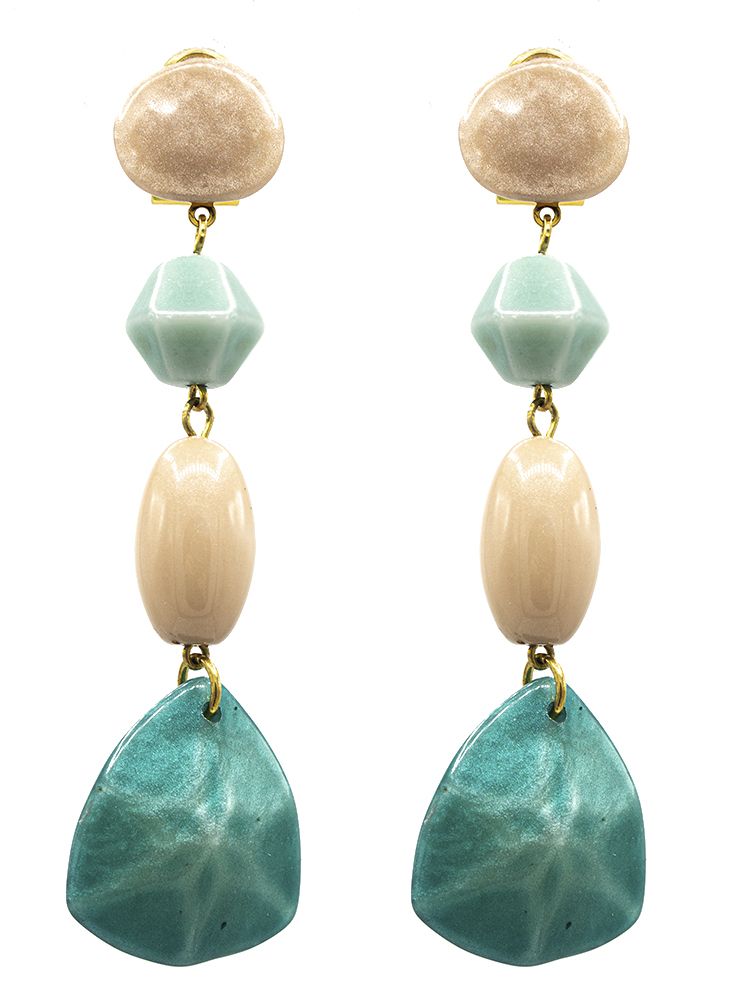 Pendiente de flamenca grande piedras nácar color beige y aguamarina