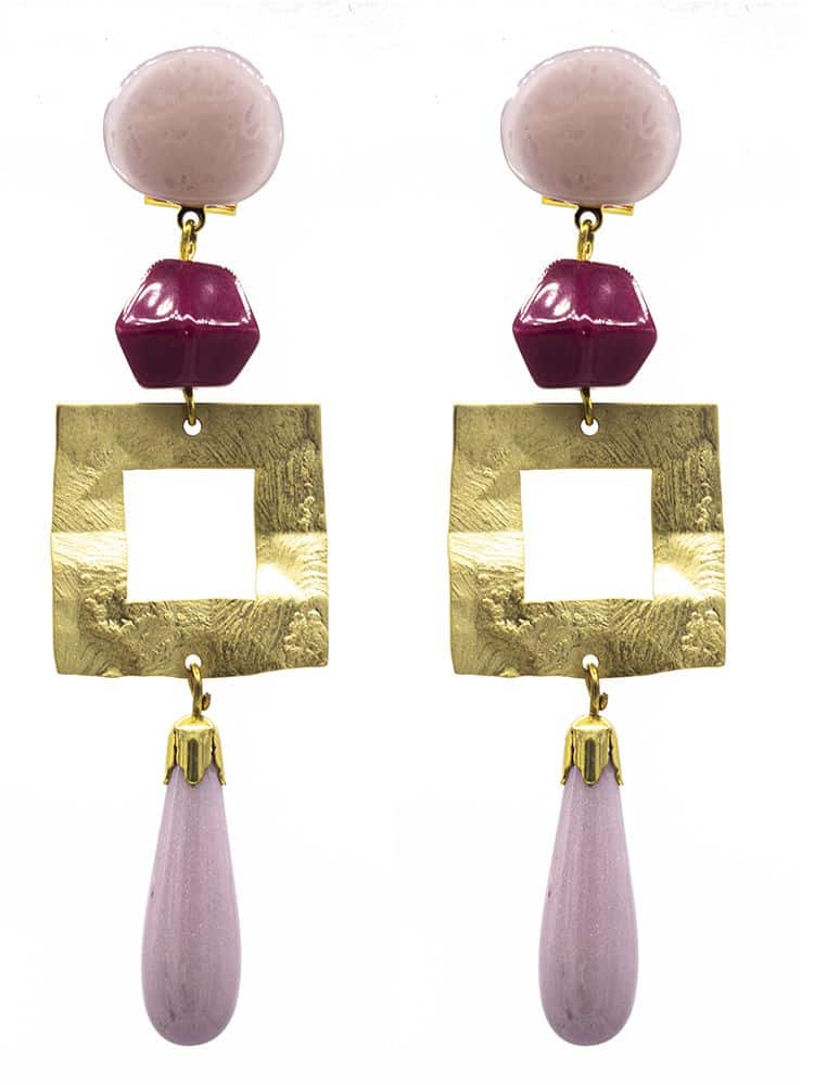 Pendiente de flamenca grande piedras nácar color malva y buganvilla