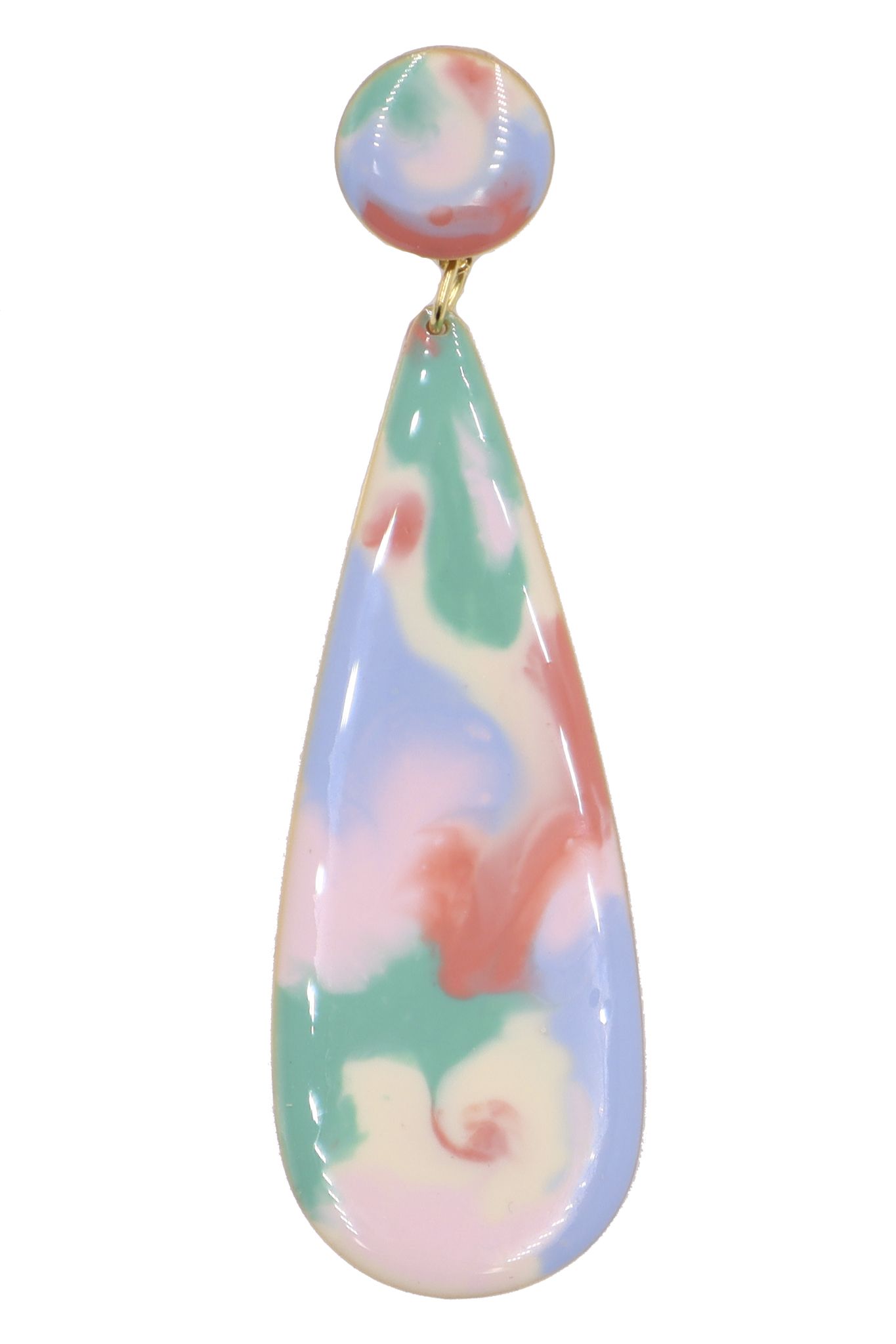 Pendiente de flamenca lágrima grande esmaltado acuarela multipastel coral, celeste, verde, rosa y beige degradado