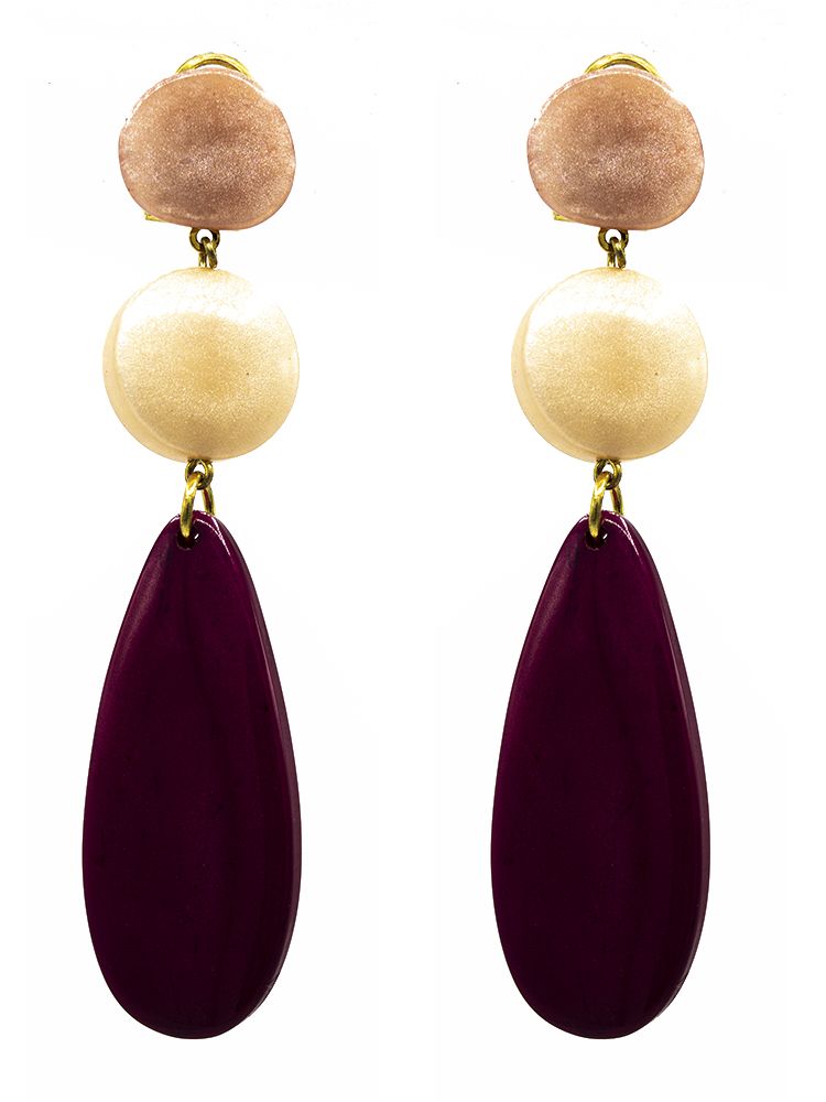 Pendiente de flamenca lágrima mediana piedras nácar color rosa bebé, beige y buganvilla