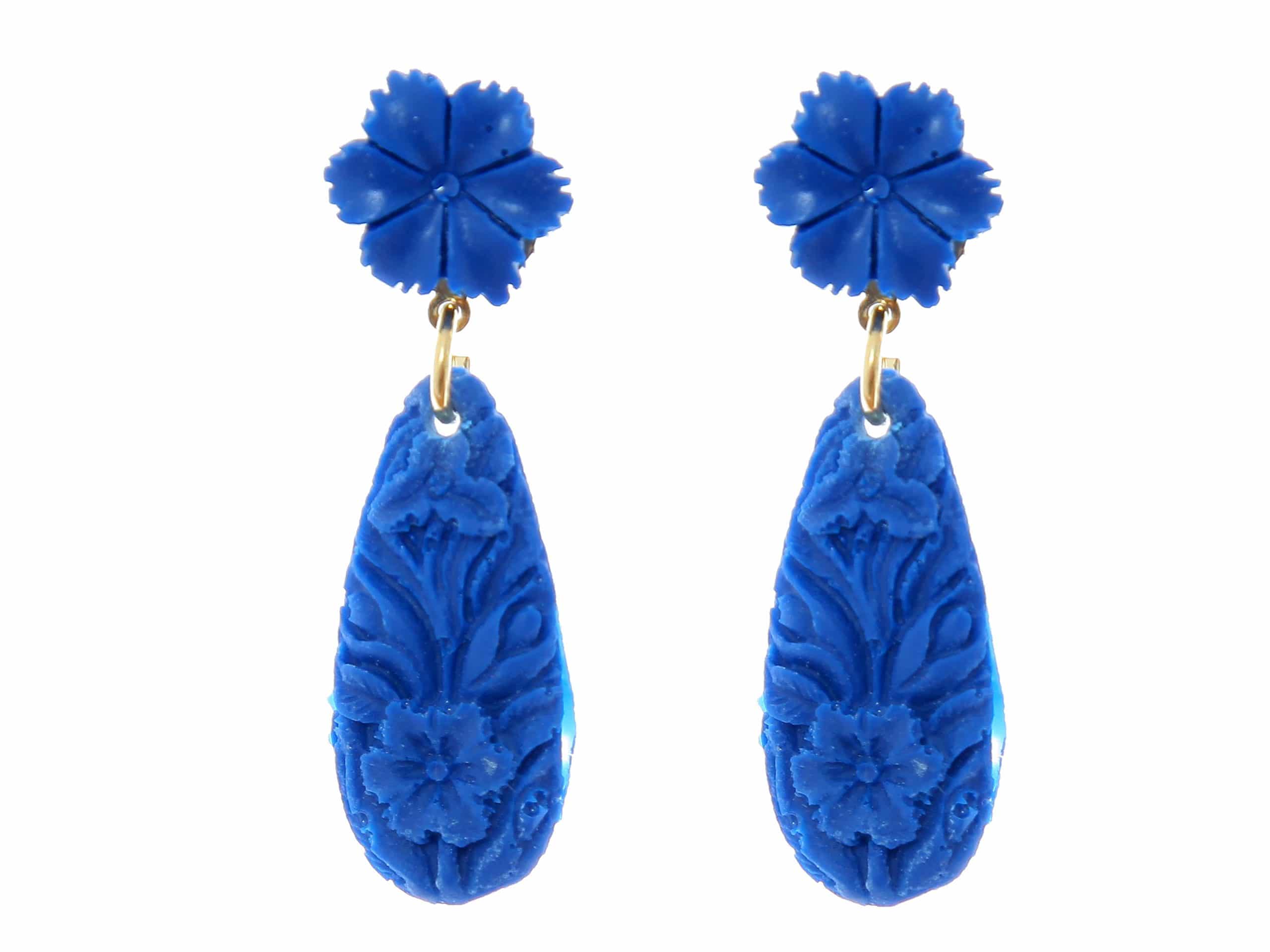 Pendiente de flamenca lágrima pequeña de resina color azul marino. Cierre a presión. Medida 30×10 mm (con cabezal). Fabricado artesanalmente en la provincia de Sevilla.