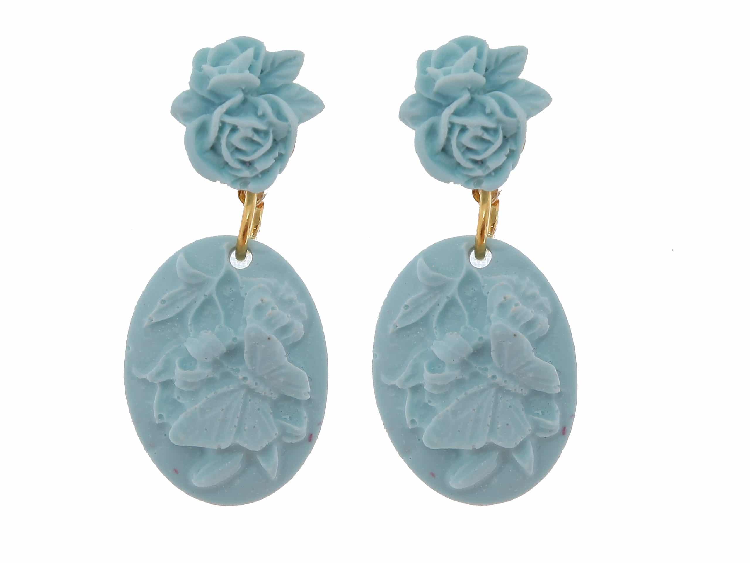 Pendiente de flamenca lágrima pequeña de resina color celeste. Cierre a presión. Medida 27×12 mm (con cabezal). Fabricado artesanalmente en la provincia de Sevilla.