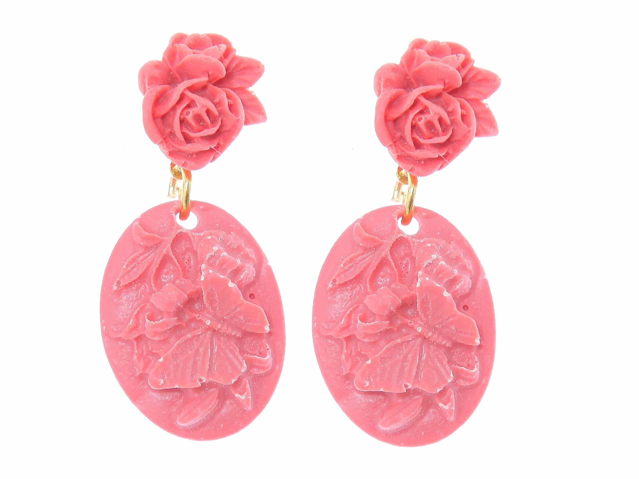 Pendiente de flamenca lágrima pequeña de resina color rosa. Cierre a presión. Medida 27×12 mm (con cabezal). Fabricado artesanalmente en la provincia de Sevilla.