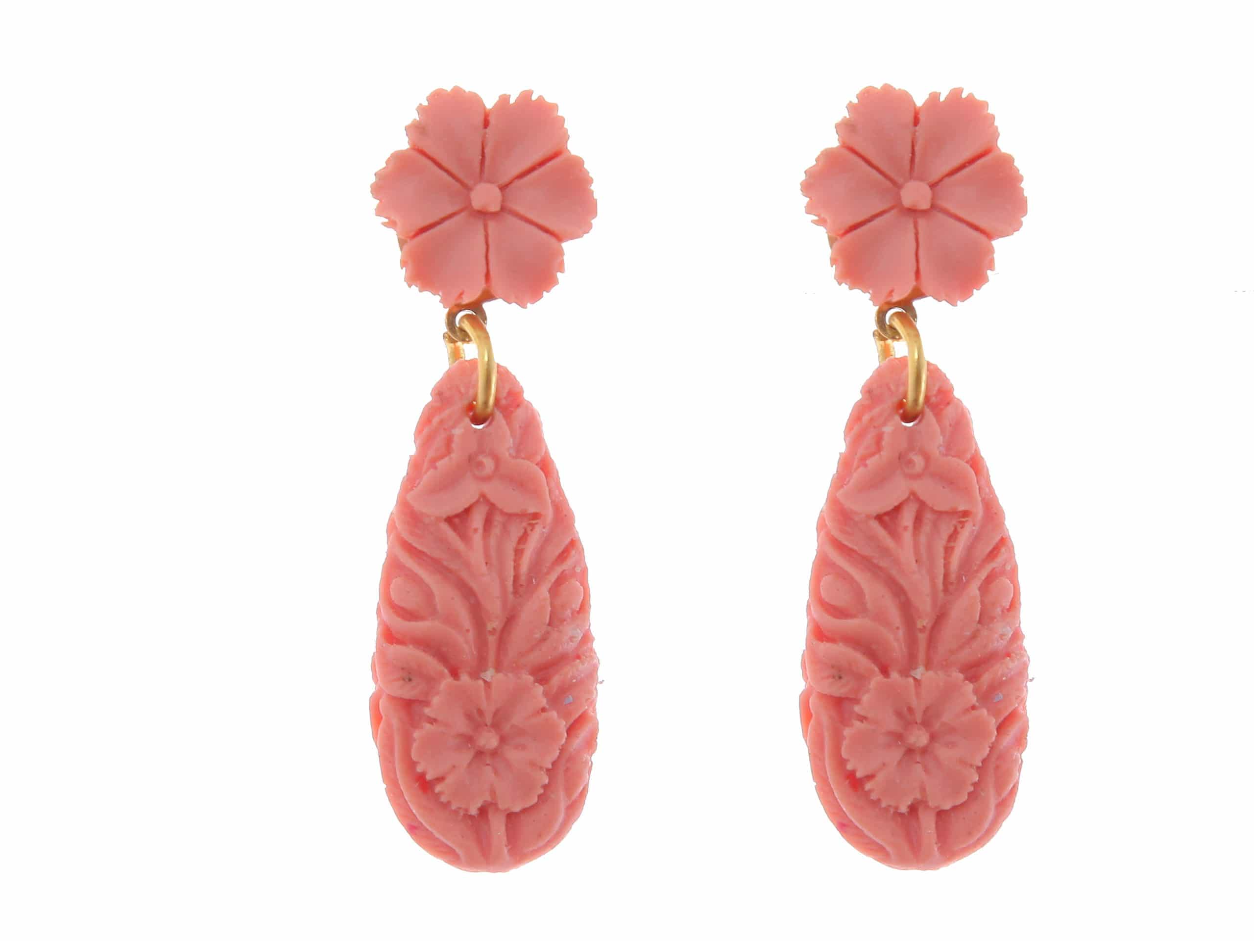 Pendiente de flamenca lágrima pequeña de resina color salmón