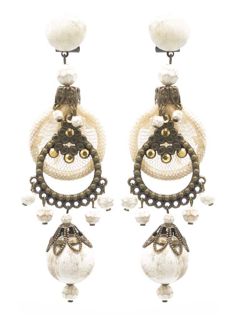 Pendiente de flamenca resina en forma de aro con filigrana beige