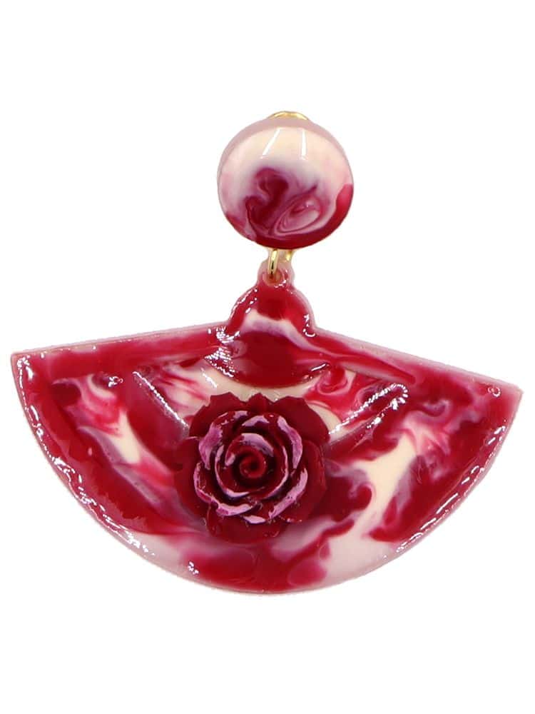 Pendiente de flamenca mediano esmaltado acuarela color sangría degradado. Cierre omega. Medida: 30×80 mm (sin cabezal). Fabricado artesanalmente en Sevilla.